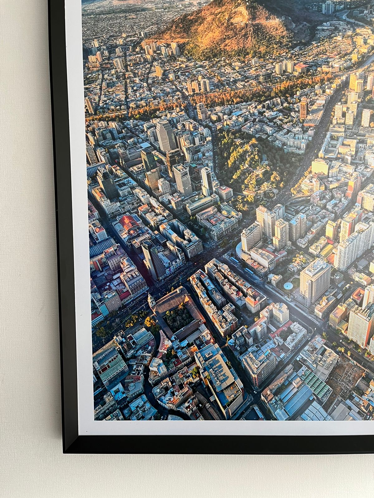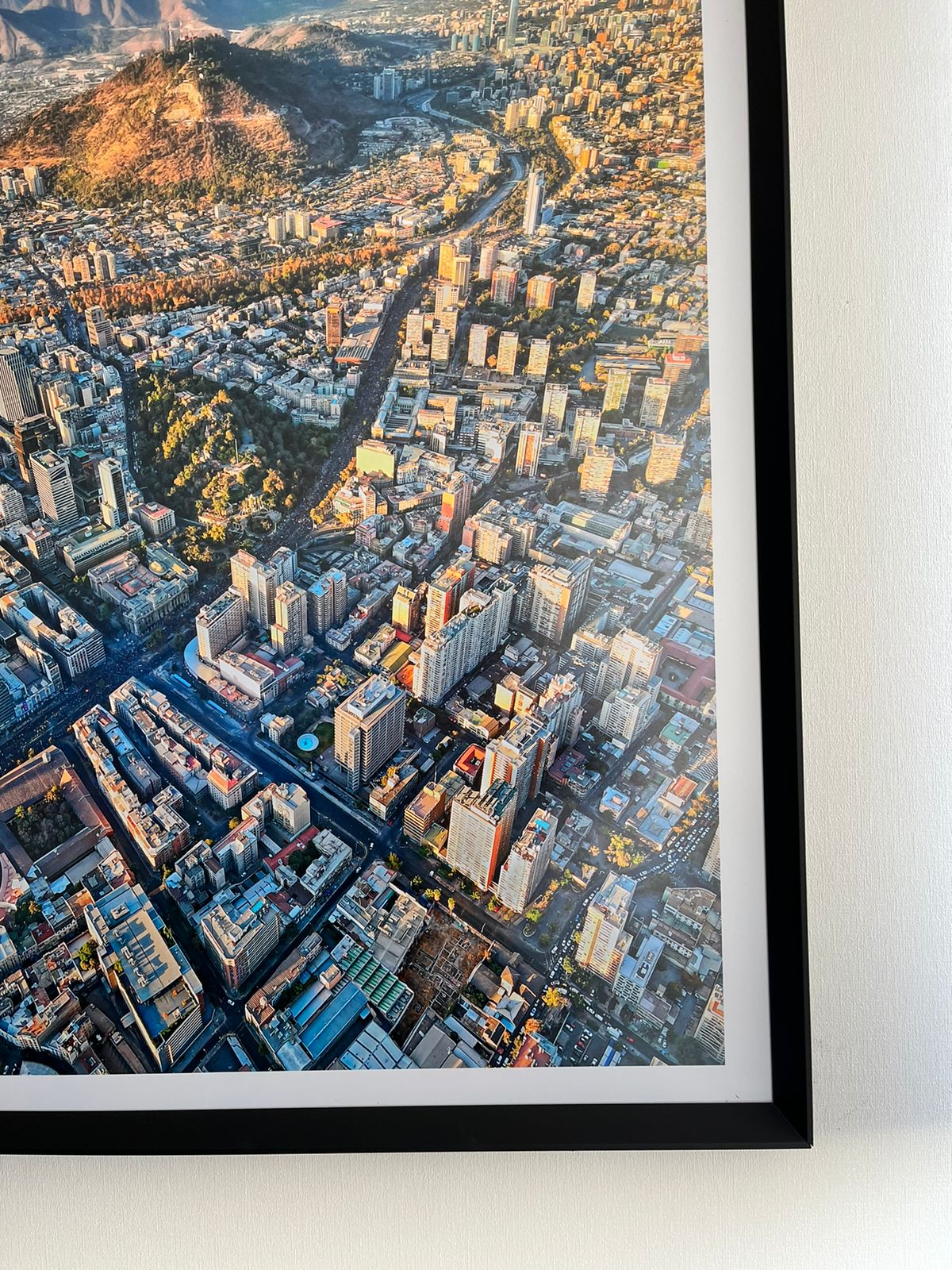 Incluye marco de 2x2 cm, color negro mate con vidrio antirreflejos (opaco).