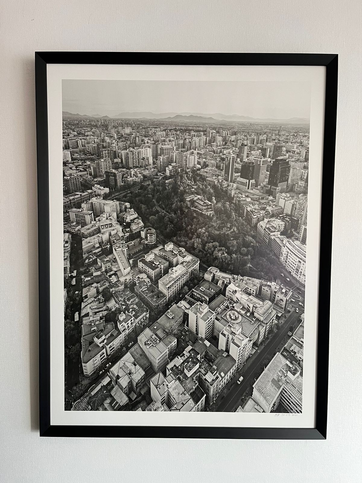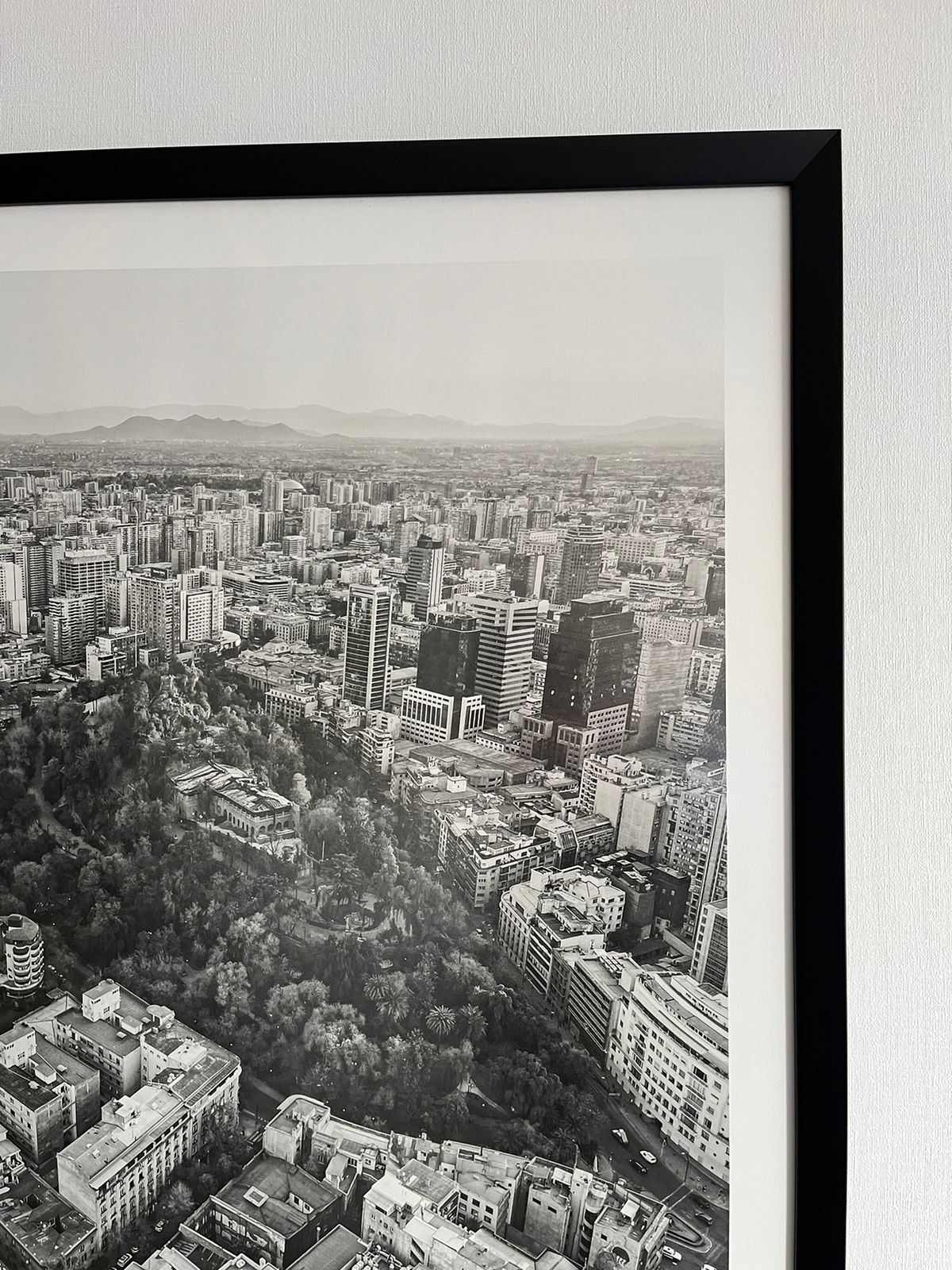 Incluye marco de 2x2 cm, color negro mate con vidrio antirreflejos (opaco).
